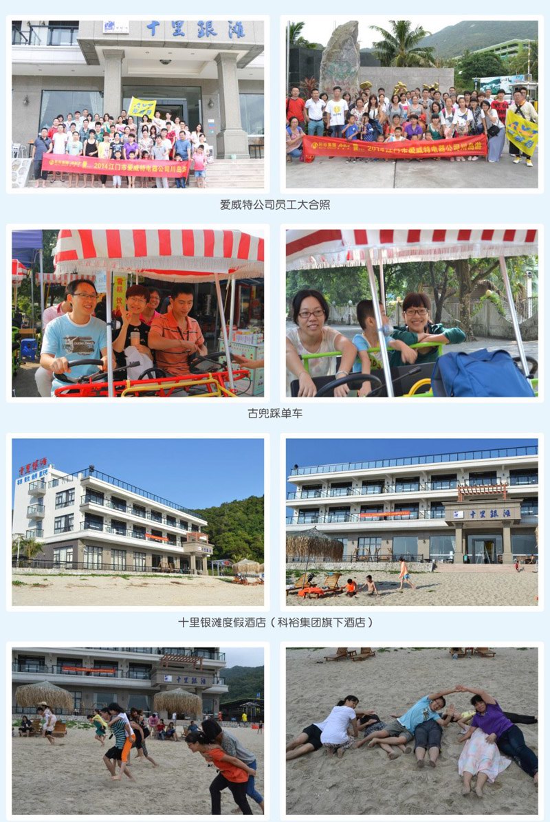 为了增强公司员工的团队意识,让员工在工作之余放松身心,享受大自然的怡人风光,10月18-19日,江门市爱威特电器有限公司组织了全体员工到享有“南海明珠”、“东方夏威夷”台山下川岛进行两天一夜的年度旅游。