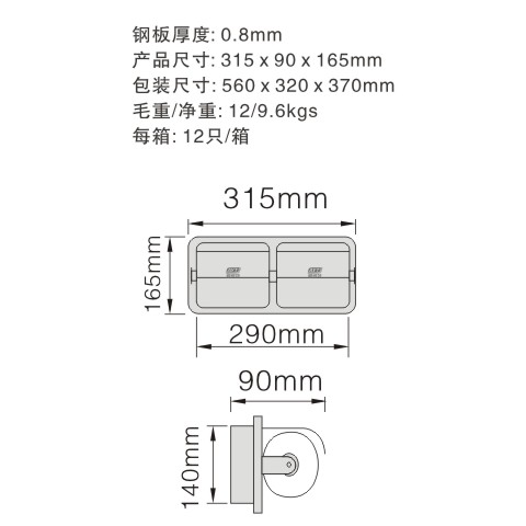平顶不锈钢卷纸纸巾架 001H